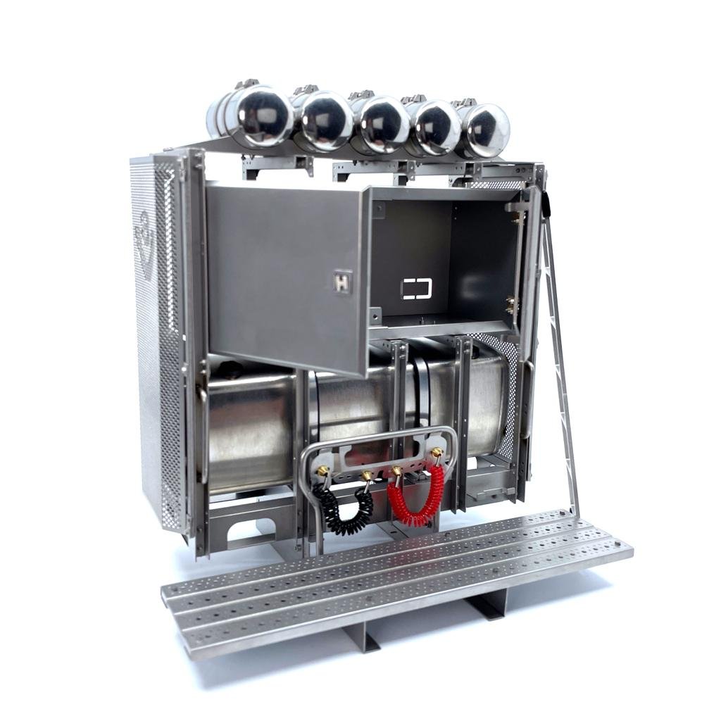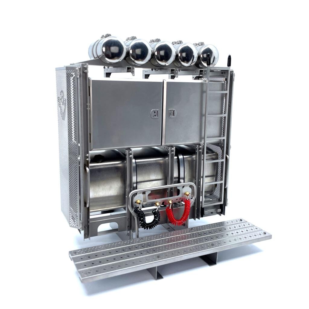 SCANIA Equipment rack including Ladder, air hoses and mounting screws. This equipment rack has room for placing a battery cabinet.